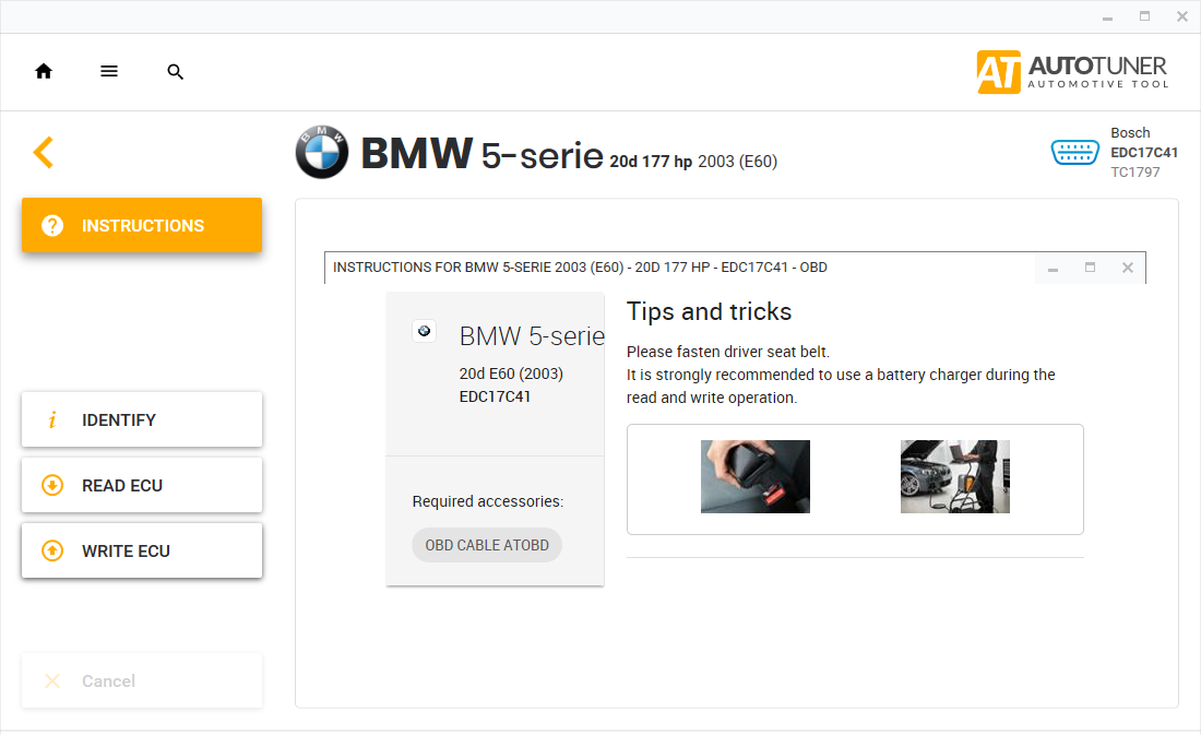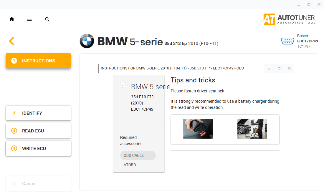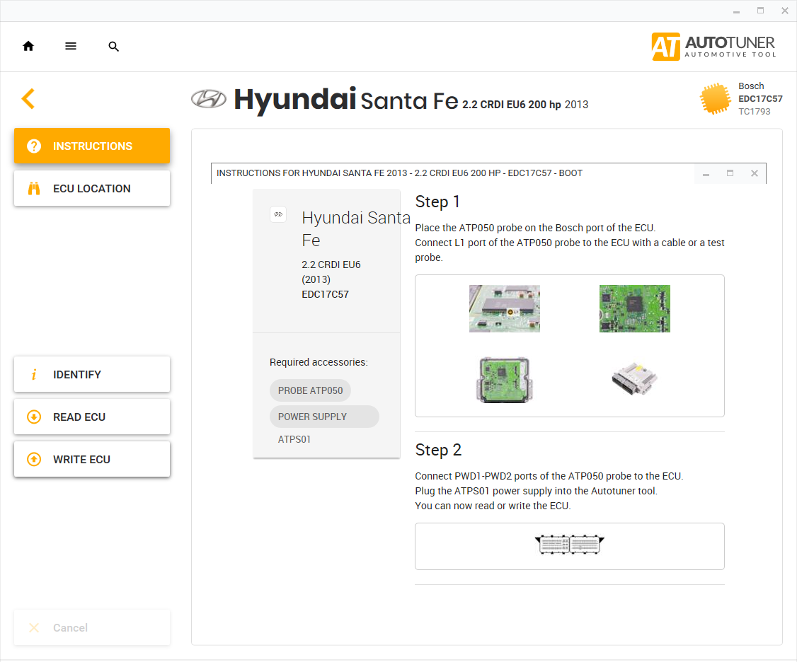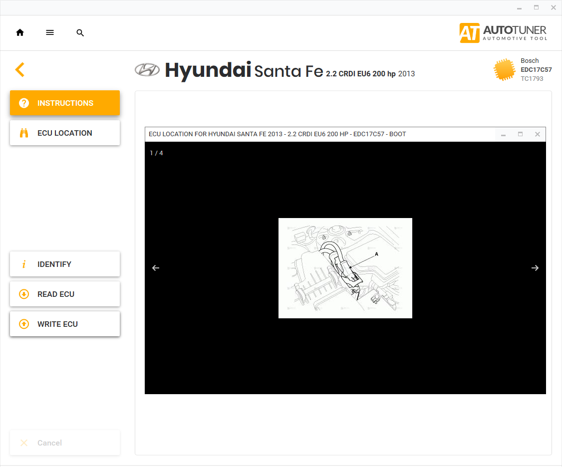 Autotuner helps you locate the ECU or OBD diagnostic socket on the vehicle.